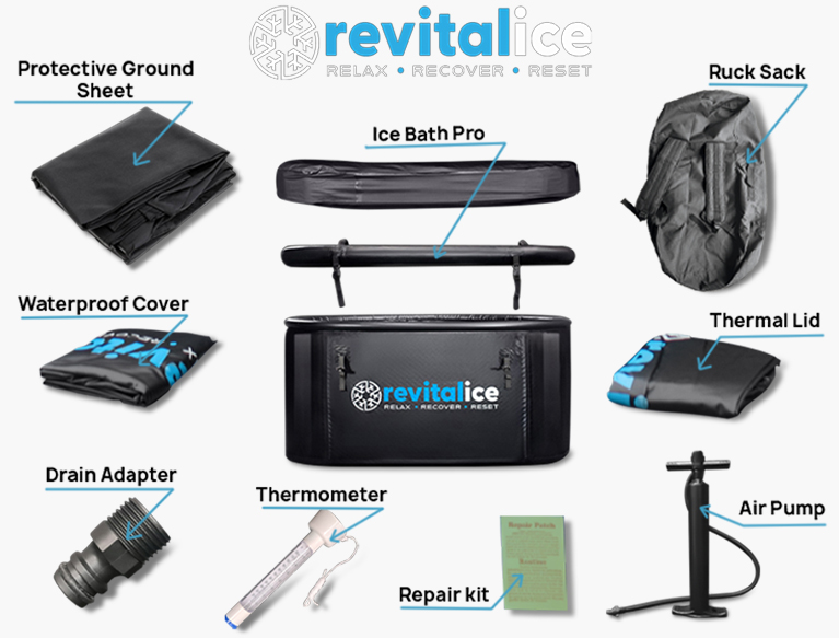 Revitalice Ice Bath Pro – The Ultimate in Cold Therapy PerformanceThe Revitalice Ice Bath Pro takes ice therapy to the next level with a more robust, hardwearing material and a significantly larger size, making it ideal for athletes, sports teams, and serious recovery enthusiasts. Designed for both individual and team use, this premium ice bath is built for durability and performance. Whether used as a standalone ice bath or integrated with the Revitalice Arctic Chiller for precise temperature control, the Ice Bath Pro offers unmatched convenience and effectiveness. Larger Size for Enhanced RecoveryWith a length of 150cm and a width of 65cm, the Ice Bath Pro is bigger than standard models, allowing for full-body immersion. For those needing even more space, three additional larger sizes are available to meet individual or team specifications. Packed with More Extras Than Any Other Ice BathUnlike other products on the market, the Ice Bath Pro comes with an extensive list of premium features at an exclusive price. Its superior design and additional accessories make it the best value for cold therapy enthusiasts looking for quality and performance.